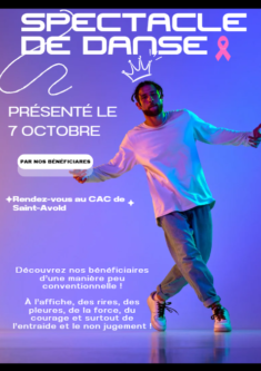 Le 7 Octobre, retrouvez nos bénéficiaires au CAC de Saint-Avold pour un spectacle de danse, destiné à transmettre un message d’espoir à toutes les personnes touchées par la maladie.