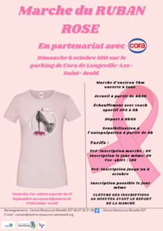Le 5 Octobre, nous organisons la marche du Ruban Rose en partenariat avec le Carrefour de Longeville-lès-Saint-Avold.